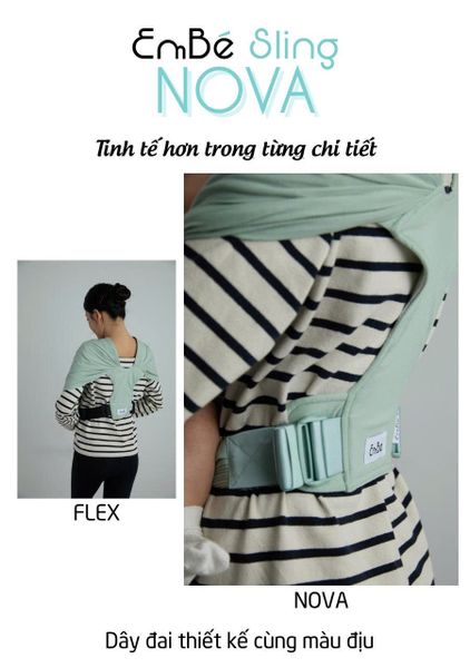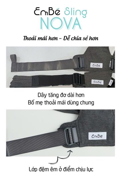 Được phát triển từ mẫu địu Flex quen thuộc, EmBé Sling Nova là phiên bản nâng cấp toàn diện, lắng nghe và thấu hiểu nhu cầu thực tế của các bố mẹ hiện đại. Không chỉ giữ trọn tinh thần “mềm mại – thoáng mát – gọn nhẹ” đặc trưng, Nova còn đột phá về thiết kế và sự tiện dụng: